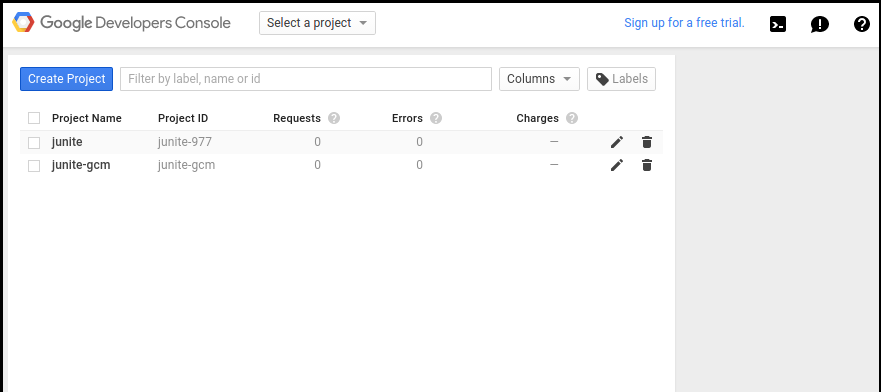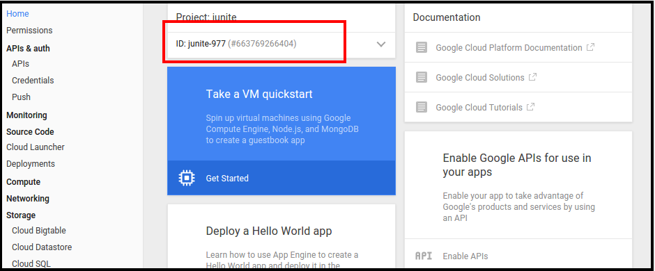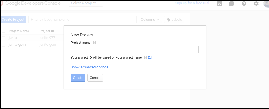 - After creating project you can see the project number. Note down the project id which will be used as SENDER ID in android project